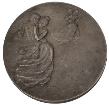 A silver medal by Franois Rupert Carabin (1862-1921), 'La Danse',showing a female dancer and on reverse two dancers, signed on obverse, stamped on edge 'argent', and '29'diameter 50mmCondition: Good very fine grade, some slight knocks to the edges, some tarnish