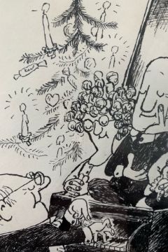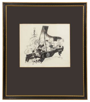 For a similar illustration see: 'The Hoffnung Companion To Music, In Alphabetical Order', by Gerard Hoffnung, Dobson Books, 1959, pg. L for Lullaby From a Private Collection.
