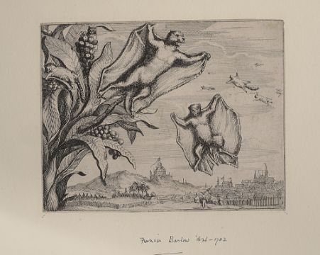 'Flying Squirrels', copper engraving, margins cropped, mounted, old collectors mark verso