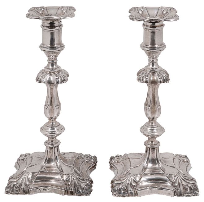 A pair of modern silver candlestick in George II style