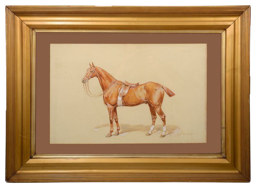 'Study of a Chestnut Gelding', watercolour, gouache and pencil, signed and dated 1896, framed and mounted,