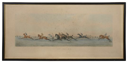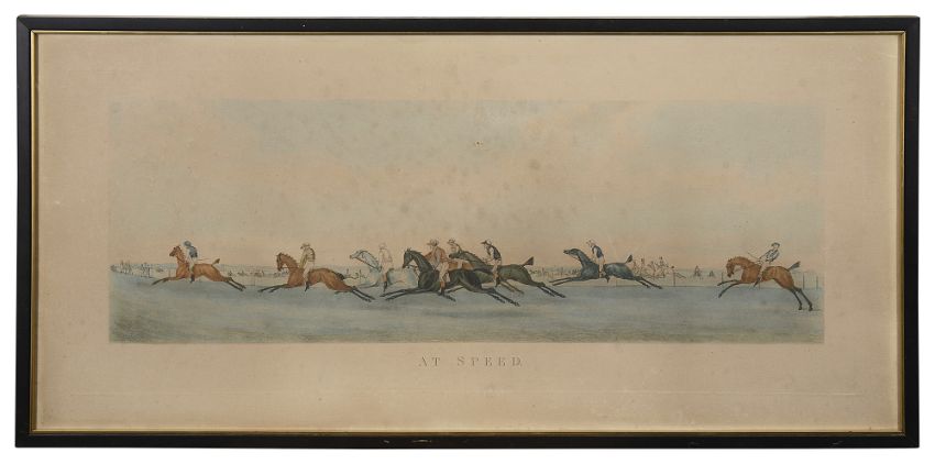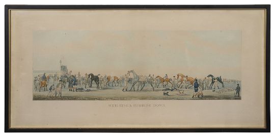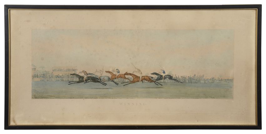 a set of four 19th century horse racing aquatints; 'Preparing to Start', 'At Speed', 'Winning', 'Weighing & Rubbing Down', each framed, one mounted, (4)