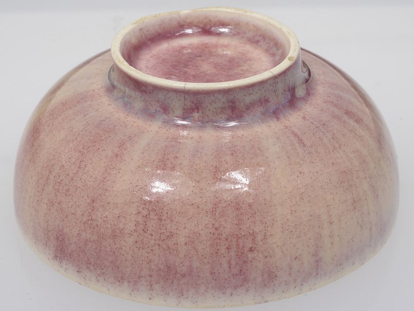 streaky pale pink/red mottled glaze