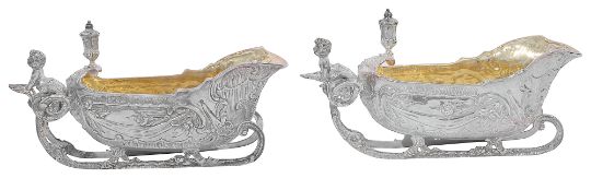 A fine pair of late Victorian novelty silver 'sleigh' sauce boats