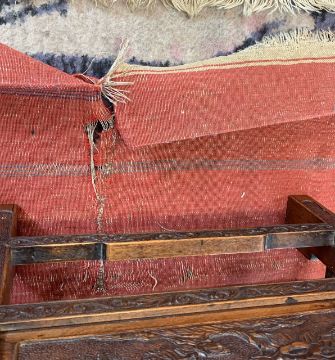 Condition: Flatweave panels worn, fraying , tear to one end