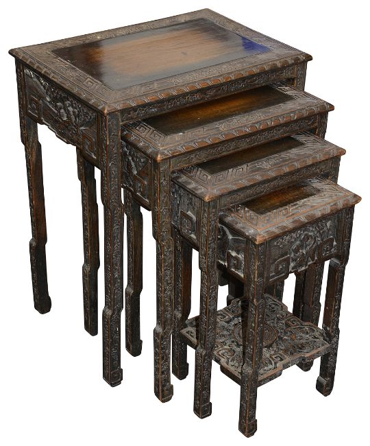 A Chinese carved rosewood nest of four occasional tables c.1930
