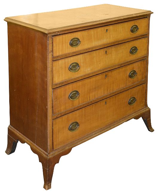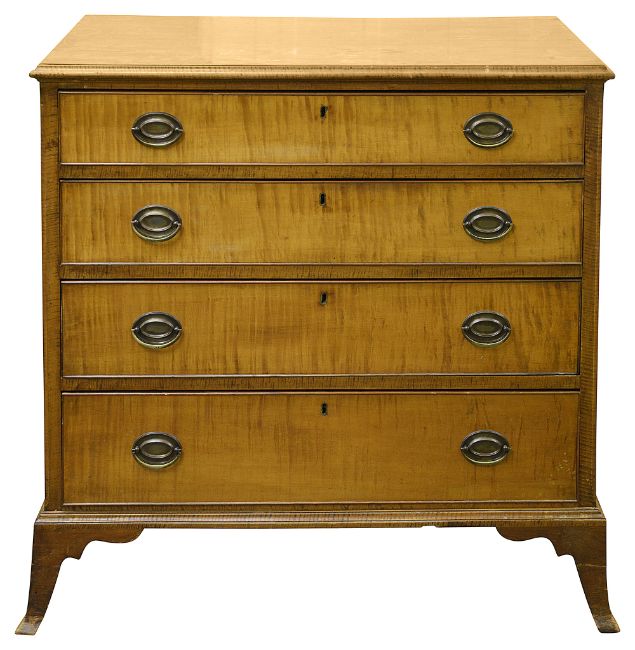 An American Federal period tiger maple chest of drawers, c.1800