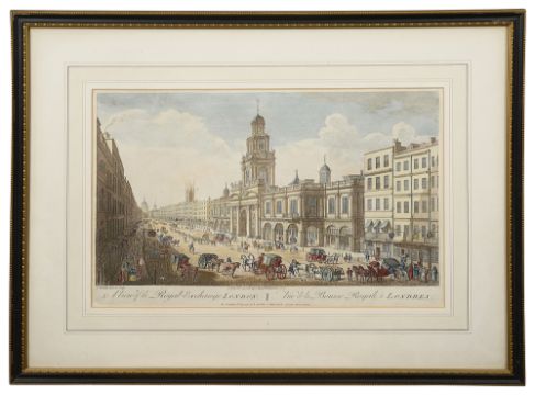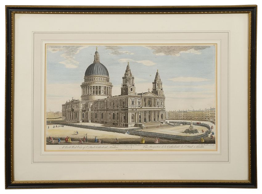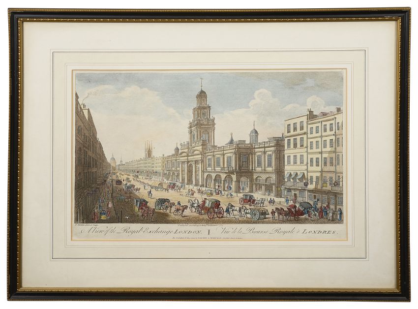 engravings with hand colouring, first after Thomas Bowles 'A View of the Royal Exchange London' re-published 1794 by Laurie & Whittle, second after Muller 'A North West View of St. Pauls Cathedral London, republished 1823 by R.H.Laurie, the third after John Bowles