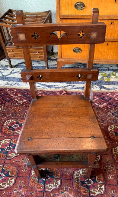 in the Gothic style, with pierced rail and carpeted steps,