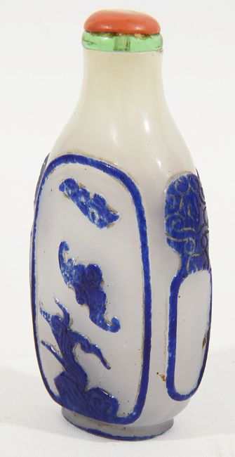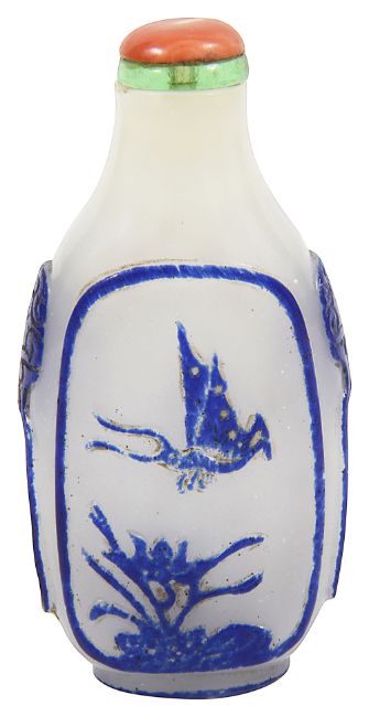 A Chinese blue overlay opaque white Peking glass snuff bottle