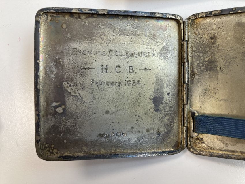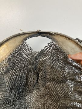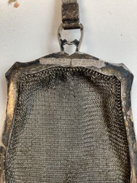 Condition: Fair condition. Larger cigarette case tarnished with some black spot these seem to rub off. Evening bag with tassels the handle is fraying to one edge of the loop handle. Larger evening bah no longer has lining and has pulled away form frame at either end. Sampson Mordan pen case has a split top case and dents