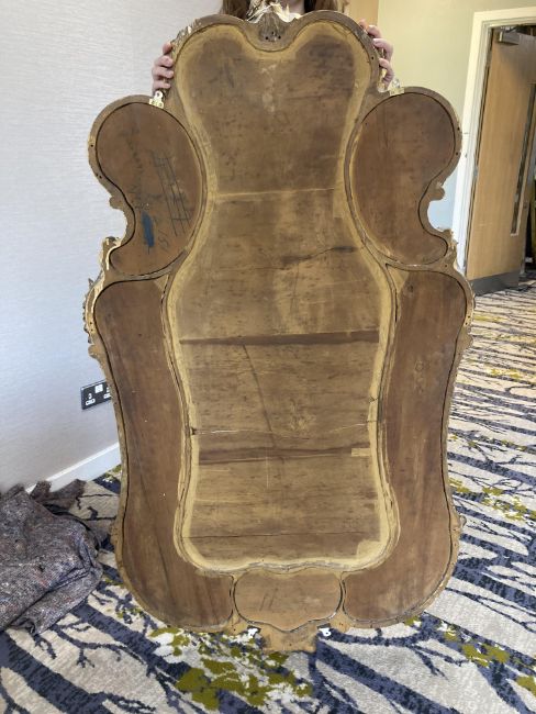 Condition: Shrinkage cracks, original plates, later gilt painted, crest pieces repaired.