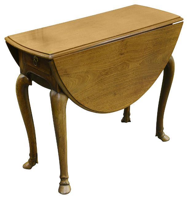 with end drawer and swing action, on cabriole legs with carved hoof feet