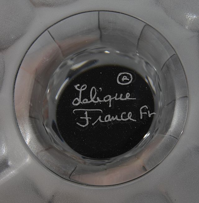the shaped body with repeating carnation floral motif to neck, signed to base 'Lalique, France, Fr', with Lalique sticker, with original box,