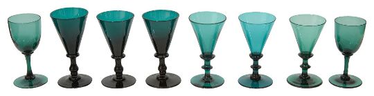 A harlequin set of eight 'Bristol' green drinking glasses,