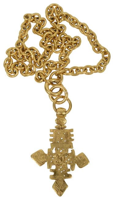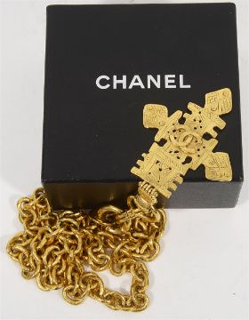 c. 1990s, CC logo to Ethiopian inspired cross shaped pendant, detachable chain with CC logo clasp, together with a Chanel card box,