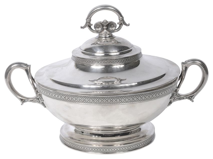 Tiffany & Co. A late 19th century sterling silver twin handled tureen and cover c.1870