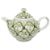 a studio pottery teapot, decorated with a repeating fleur-de-lys motif in green on a white ground, bearing JCJ monogram to base,