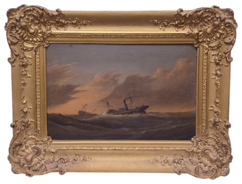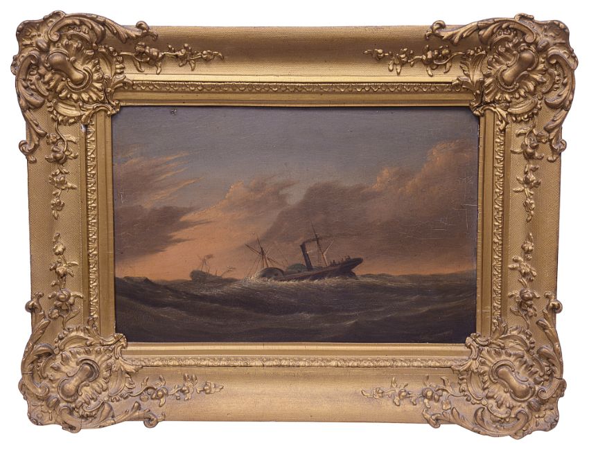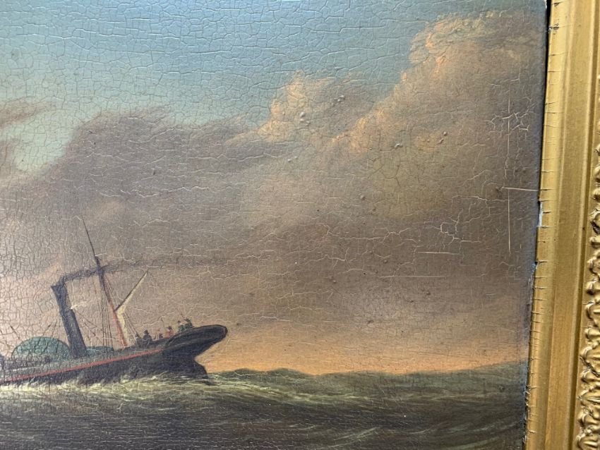 'A Paddle Steamer in Stormy Seas', oil on panel, signed and dated to lower right corner T. Luny, '24, in gilt frame,