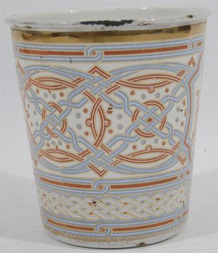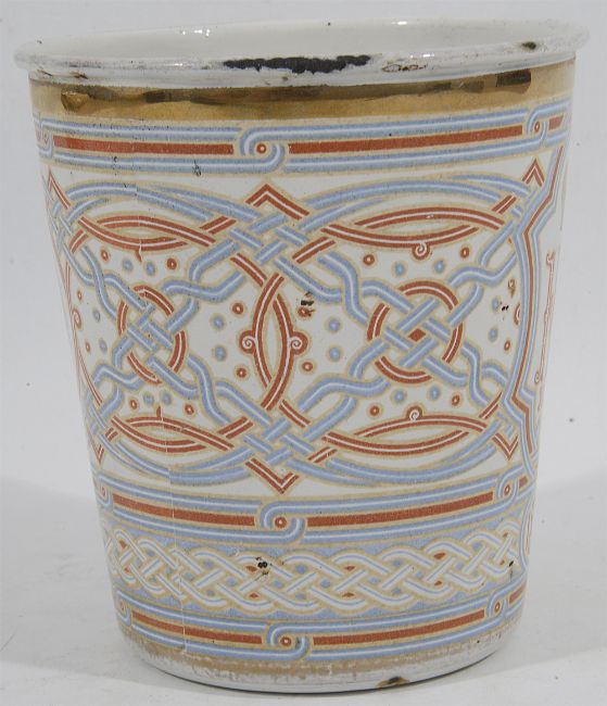 A Russian enamel Khodynka cup made for the coronation of Tsar Nicholas II & Tsarina Alexandra Feodorovna, 1896, bearing Imperial Romanov eagle and cyphers of both Nicholas and Alexandra,