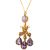 A Regency-style amethyst and gold cannetille girandole pendantthe adorned cannetille 'C' scrolls suspending three pear-shaped amethyst drops, oval amethyst and gold ropetwist later surround, to the associated fine curb link chain necklacependant length 5.4 cm, gross weight 8.5gCondition: Overall condition good, commensurate with age, slight tarnish to cannetille work. Amethysts pale but well matched. Possibly converted from an earring.