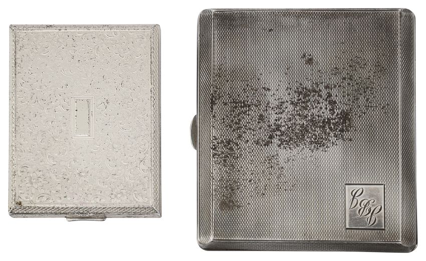 Condition: Compact in good condition. Tarnish / tacky residue to front of cigarette case