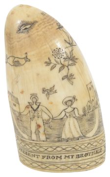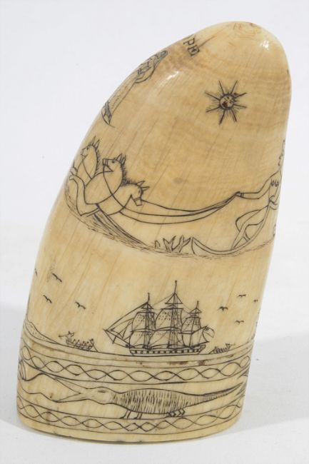 An unusual early 19th century sailor work scrimshawed whales tooth,