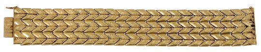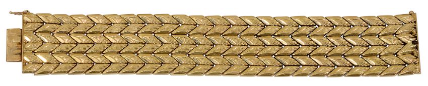 composed of flexible rows of engraved chevron motifs, to the concealed clasp stamped '0750' and two continental marks including possibly Austrian