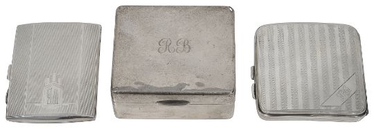 A George VI silver table cigarette box and two engine turned cigarette cases
