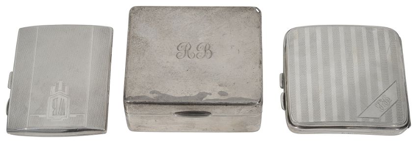 first Birmingham, 1937 by William Neale & Son Ltd, plain square, cedar lined, initialled, both cases initialled, (3)