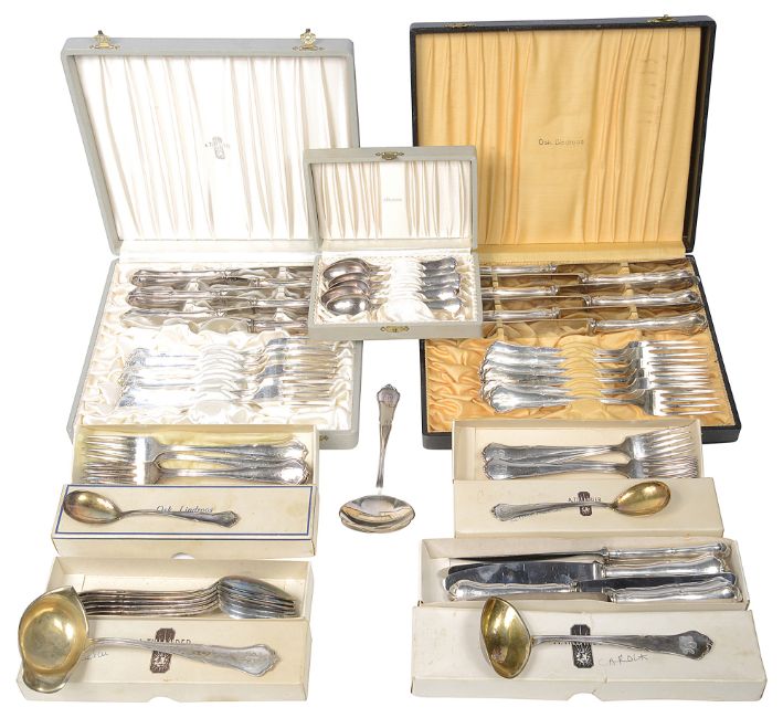 Two matched Finnish .813 silver 'Chippendale' pattern six setting canteens of flatware