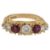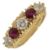 the three graduated brilliant-cut diamonds separated by a circular-cut ruby, to the 18ct yellow gold pierced and scrolling gallery, London 1974,