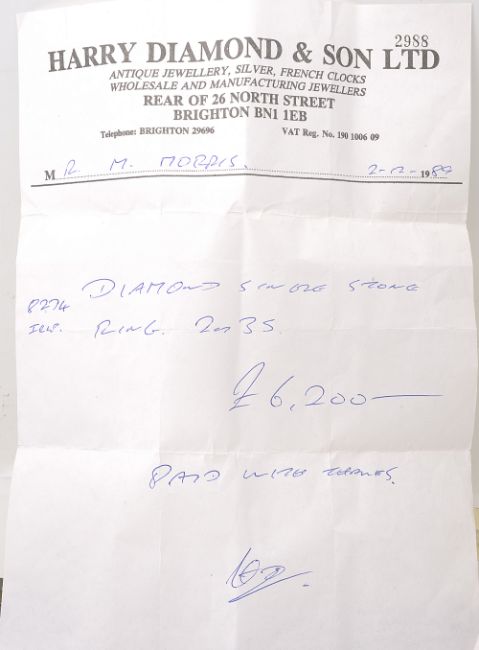 Condition: Overall condition of ring setting good/very good. Diamond: estimated colour K/L, estimated clarity SI2/PK1 due to chips to the girdle
