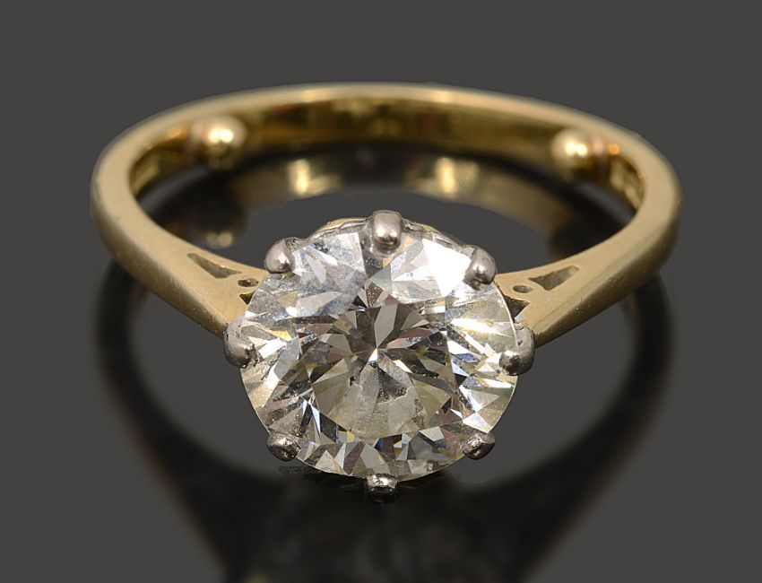 the brilliant-cut diamonds estimated to weigh 2.35cts approximately to the 18ct coronet setting and plain tapering shank, London hallmark,