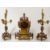A mid 19th century French Gothic Revival ormolu and painted porcelain three piece clock garniture