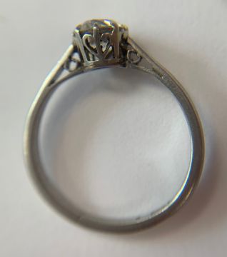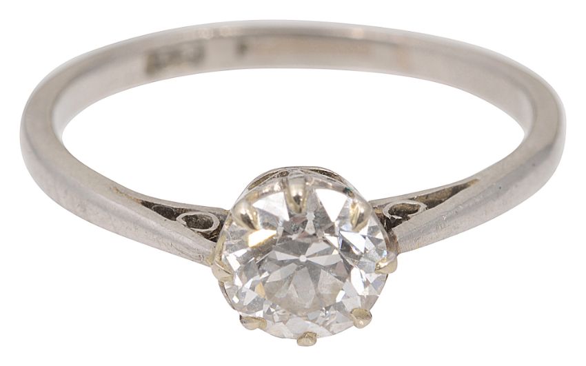 A diamond single stone ring, the old brilliant-cut diamond estimated to weigh 0.70-0.80 cts, to the heart-shaped gallery to the plain tapering shank stamped 'R.B'