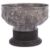 of circular form, finely embossed in raised relief with chrysanthemum flowers against a textured ground raised on a circular foot and ebonised plinth base