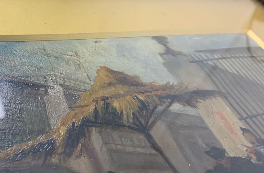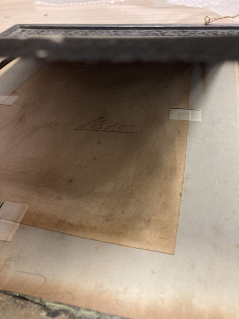 Condition: Unexamined out of frame - evidence of flaking to edges of work, some minor surface dirt otherwise good.
