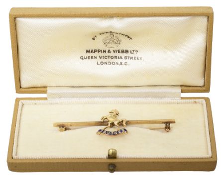 with gilt metal horse with enamel Invicta banner below mounted on a 9ct pin, in a fitted case