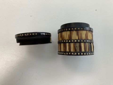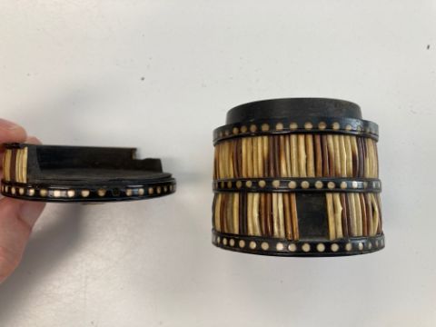 A pair of porcupine quill boxes,