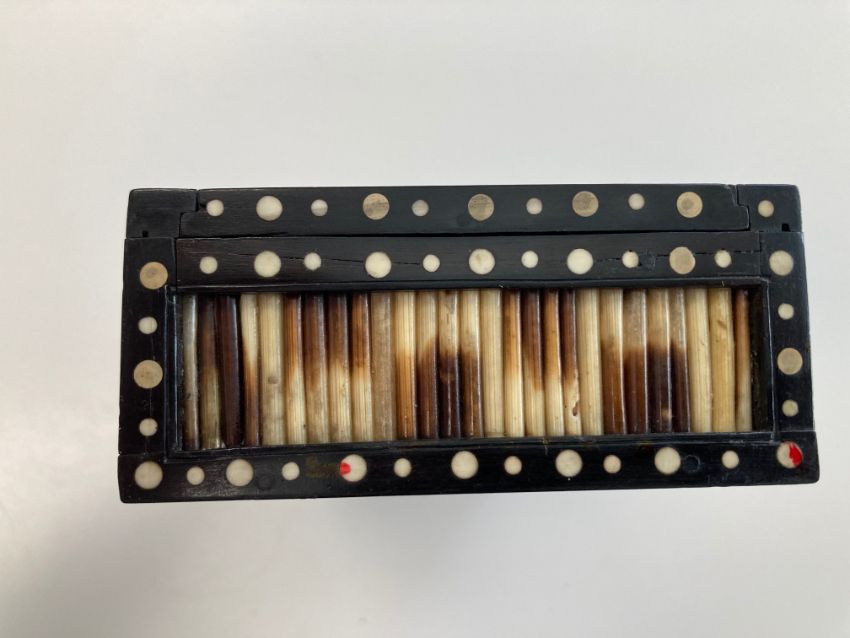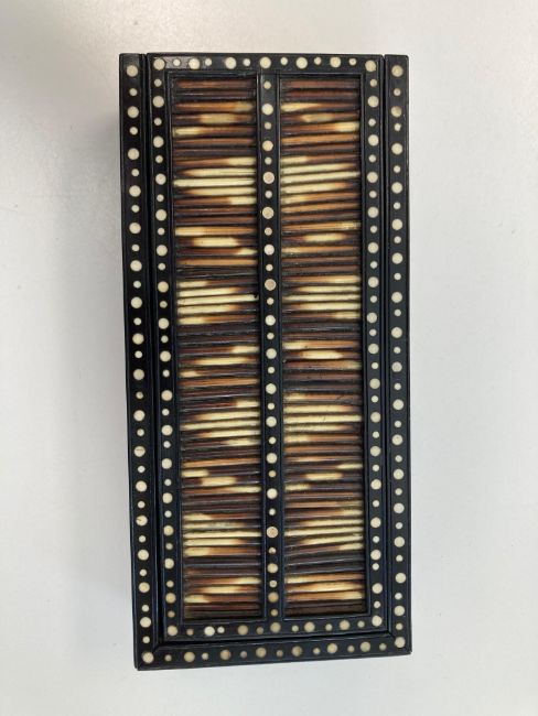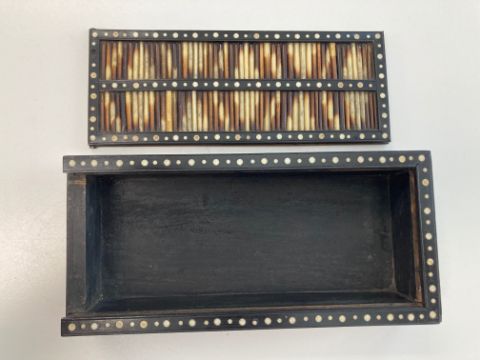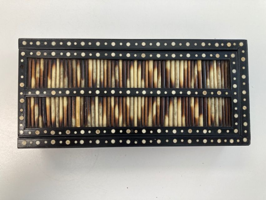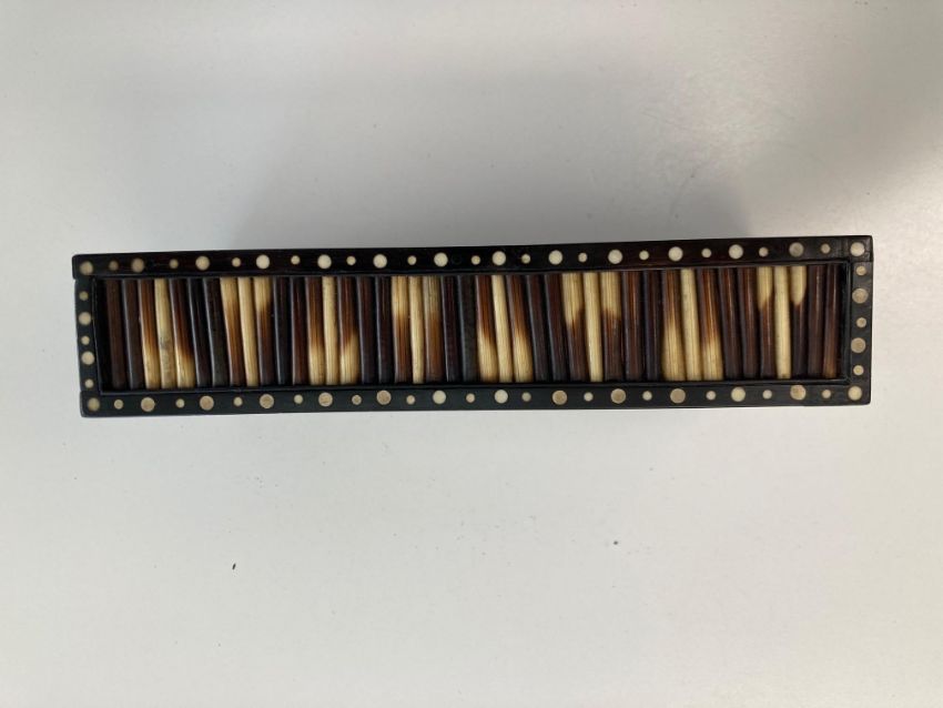 late 19th/ early 20th century, together with a further example of round form, all with ivory dot inlay,