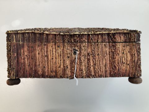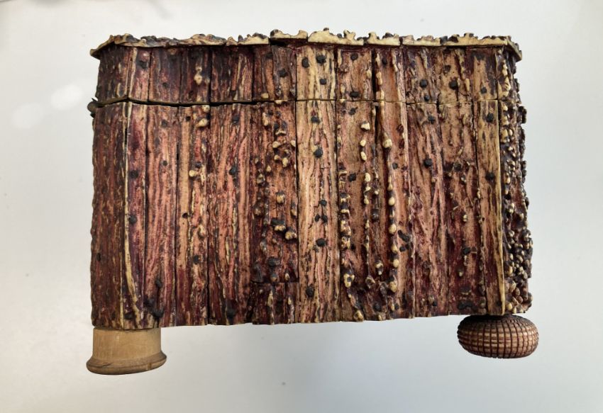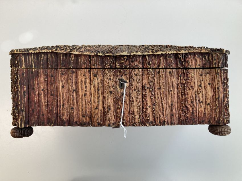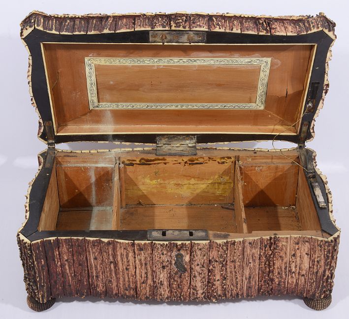 A 19th century Anglo Indian Vizagapatam sandalwood and stag horn box,