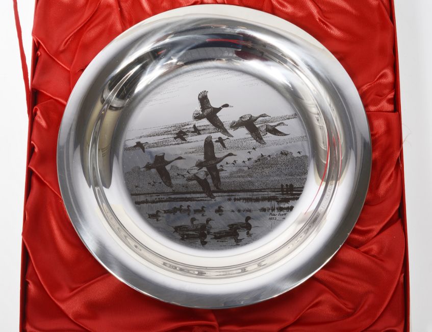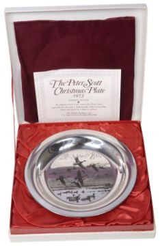A modern silver Peter Scott 1973 Christmas plate, 'Evening Flight'