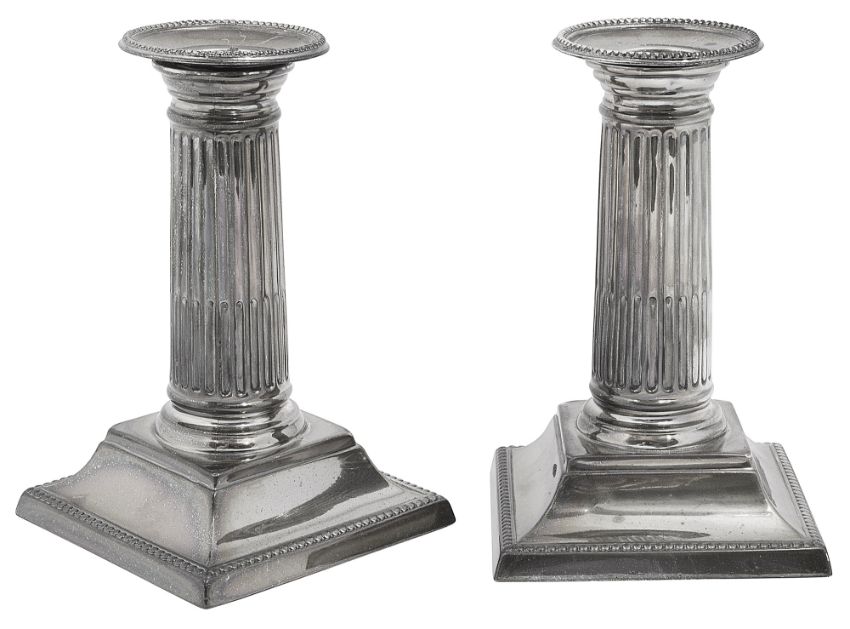 stop fluted on square weighted bases with beaded borders, detachable drip pans, (2)