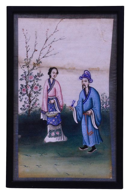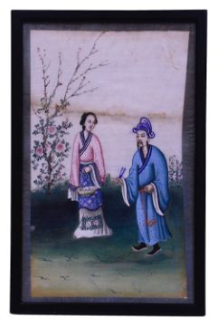 'An official with his wife in a garden', gouache on rice/ pith paper, framed