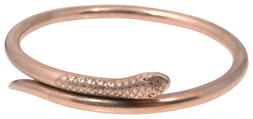 A yellow gold hollow snake's head bangle