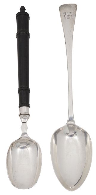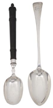 A George IV silver Old English pattern basting spoon and a 19th century plated server