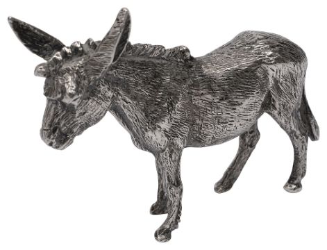 A naturalistically cast silver figure of a standing donkey