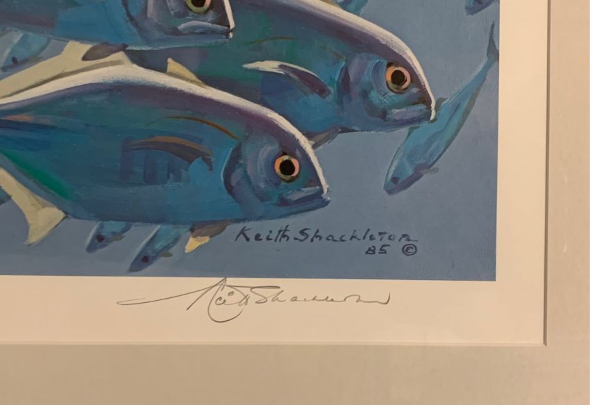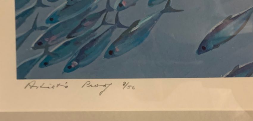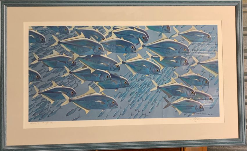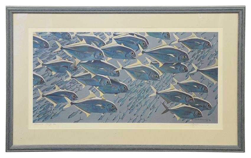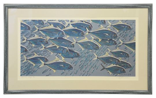 Keith Shackleton (British, 1923- 2015): 'School of Fish' limited edition Artists Proof print, numbered 8/56, signed in pencil, the print itself dated 1985, framed and mounted,