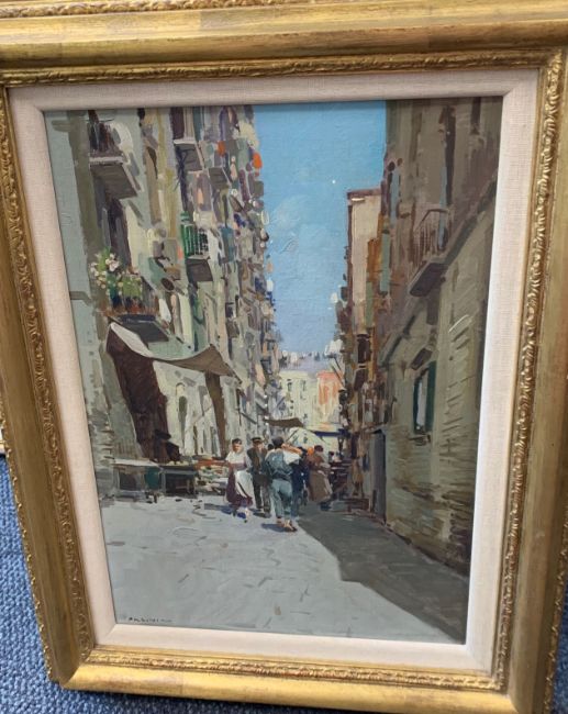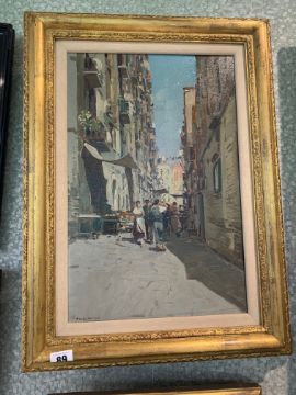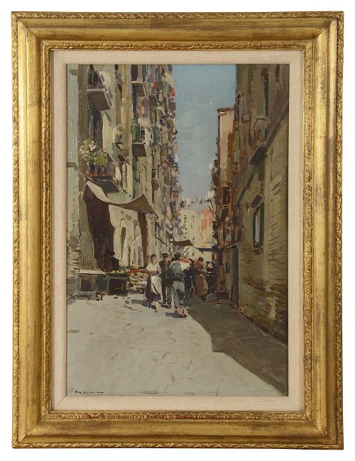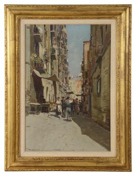 'Italian Street Scene', oil on canvas, signed lower left, framed,